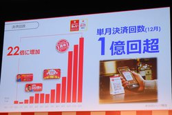 また、利用できる店舗はこの2ヶ月で170万ヶ所から185万ヶ所に増加したとのこと。そして1ヶ月あたりの決済回数は、1億回以上に(昨年12月実績)。この回数は第一弾の100億円キャンペーンを行った18年12月と比較して、約22倍の数字だという。