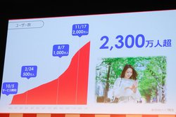 現在のユーザー状況や今後の方針などについて、同社代表取締役社長執行役員CEOの中山一郎氏から言及。キャッシュレス利用率ではクレジットカードに次ぐ2位を記録し、ユーザー数は前回の発表会である2ヶ月前から300万人増の、2,300万人を達成したことを明かした。