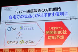 店頭での支払いだけではなく、オンラインでの決済も拡大していくとのこと。これまではYahoo!ショッピングなど自社サービスだけの対応だったが、2020年はZOZOTOWNやジャパネットたかた、イシバシ楽器など外部のショッピングサイトにも広げていくという。