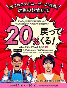 本キャンペーンは期間中に対象店舗での支払いにPayPay決済を利用すると、Yahoo! プレミアム会員ユーザーは25%、それ以外のユーザーは20%のPayPayボーナスを受けられるというもの。付与上限は1回につき2,000円相当、期間中3,000円相当となる。対象ブランドのうち、PayPay決済が利用可能な店舗にて本キャンペーンを受けることが可能。