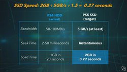 HDDを搭載するPS4は50-100MB/sであることから、約100倍の速度だと説明。PS4では1GBのロードに20秒かかっていたが、PS5では2GBのデータを0.27秒で読み込むことができるという。