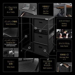 BHD-1200BD-BKは足元にワイドモニターやデュアルモニターを設置できるシングルベッド。BHT-800S-BKは電源タップを配すことでベッド横の充電基地としても活用可能。BHT-830-BKに羽織は掛けて、小物類はボックスに入れてスッキリ収納することで、起きてすぐにベッドの上で着替えができるとしている。