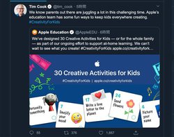 アップルCEOのティム・クック氏も自身のツイッター上で、子どもたちが身の回りにあるものから創造の種を芽吹かせられる「よき遊び方」としてこれらを紹介している。