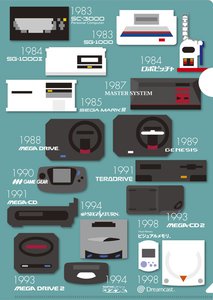 切手シートは、セガがこれまでに発売した代表的な9種類のハードと、セガロゴの全10種で構成(切手は63円切手)。シート上部には各ハードをモチーフにしたアイコンをレイアウトしている。