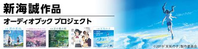 コミックス・ウェーブ・フィルム全面協力のもと、豪華キャストを起用したオーディオブックは「アニメには無い小説ならではのエピソードや心情、新海誠作品の魅力の一つである “言葉の響き” を “声” で伝える」ことで、作品の魅力が再発見できるものとなっている。>新海 誠作品オーディオブックプロジェクトはこちら<