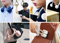 ヘッドホンのように首にかけるだけで使用できる首掛け扇風機。羽根なしの設計を採用しており、ファン内部のタービンが回転しながら空気を吸い込み、吹き出し口を通して風を送り出す際の圧力差を利用することで、風力を生み出しているという。