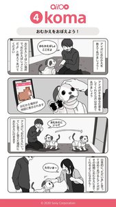 出迎えてほしい場所でaiboに「おむかえばしょはここだよ」と声をかけると、地面の臭いを嗅ぐ動作とともに学習を開始。その後“バイバイ”と手を振る仕草をしたら、褒めてあげることで終了する。My aiboの地図を確認して、ドアのアイコンが表示されていたら学習は成功となる。