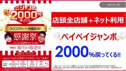 PayPay、支払い金額の最大2,000%が戻ってくる「ペイペイジャンボ」感謝祭