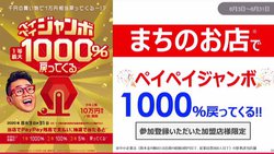 また8月3日から31日までの期間、対象の「まちのお店」で最大1000%戻ってくるペイペイジャンボを開催する。こちらは1等1,000%、2等100%、3等5%で、付与上限は10万円相当/回・期間。