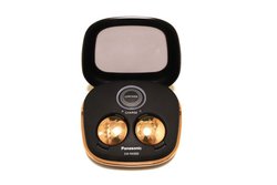 もうひとつの「高周波治療器 コリコラン」。これは高周波で血管を拡張し、肩凝りや腰痛を改善する商品だ。一見すると「デカい完全ワイヤレスイヤホン?」という感じだが、充電ボックスで充電した本体を、背中や腰など、血行が気になるところに貼り付けて使用する。