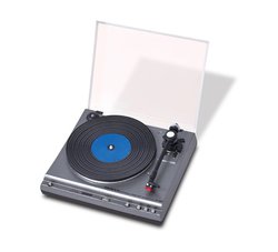 レコードプレーヤー「CP-490F」は1980年発売のコンパクトで操作性の高いモデル。ダストカバーは開閉することができ、トーンアームも実物同様に動かすことが可能。取り外しできるレコードも付属する。