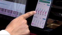 データはクラウド上にアップロードされ、ピアノに設置したタブレットだけでなく、アプリをダウンロードすれば自身のスマホでも情報表示が可能。アプリでは打鍵の特徴を波形表示するほか、リズムや力の加減などをグラフなどで可視化する。