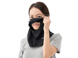 首から顔を覆う設計で紫外線や日焼けをカバー。冷感加工も施しており、「ひんやりとしたつけ心地なので、1日中快適に過ごすことができる」としている。また、鼻と口元の部分は小窓仕様になっており、呼吸がしやすいことに加えて、装着したままで水分補給ができる。