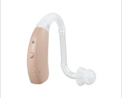 製品はコンパクトかつ片側約2.2g(電池含まず)と軽量で、本体部はベージュ、イヤーフックとインサートチューブは透明と装着しても目立ちにくいデザインを採用。左右兼用仕様のため、左右を気にせず手軽に装着できるという。