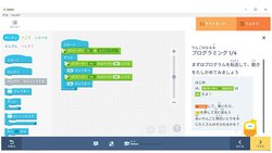 カリキュラムでは例えば、回転する木の上にリンゴ(に見立てた赤いブロック)を置いていくゲームを組み立て、アプリでその回転速度を変更するなどといった過程を通してプログラミングを学ぶ。アプリでは文字や図形に加えて、動画での説明も行われる。こうした体験により、「子供の自発的な取り組みを促し、楽しむなかで好奇心と思考力を自然に育むことができる」とソニーはアピールしている。