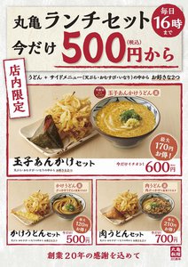 丸亀製麺、創業20周年記念の期間限定『丸亀ランチセット』を販売開始。12月28日まで