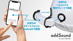(株)あおごちは、オートバイ用ヘルメットを振動させスピーカーのように音を鳴らすことができる“オートバイ・サウンドシステム”「addSound」を発売した。価格はオープンだが、同社直販サイトでは29,700円(税込)にて販売されている。