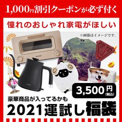 Nintendo Switchが入ってるかもしれない『【2021運試し福袋】ひきこもりでもゲームがしたい!(豪華商品が入ってるかも)』と、バルミューダが入ってるかもしれない『【2021運試し福袋】憧れのおしゃれ家電がほしい!(豪華商品が入ってるかも)』の2種類を用意。それぞれ、ヴィレヴァン通販で過去販売したアイテム6点がランダムで入っていることに加え、ヴィレッジヴァンガードオンラインで使用可能な1,000円引きクーポンが必ずもらえる。