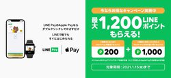 LINE Pay、最大1,200ポイントがもらえるApple Pay対応キャンペーン