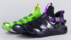 「W」(税込22,000円)は、物語同様に二人で一人の仮面ライダーという設定にオマージュを捧げ、左右で違ったカラーを採用したミスマッチスニーカーとして仕上げた。
