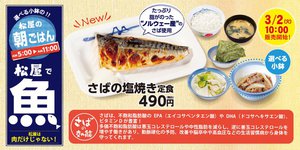 松屋の朝定食メニューとして、「さばの塩焼き定食」が3月2日10時より新登場する。