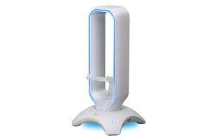 CRC-HSMBU3は、有線マウスのケーブルを保持して引っかかりを防ぐマウスバンジーと、USB 3.2 Gen1対応のUSBポート2基が一体となったヘッドホンスタンド。ゲーミング環境をスマートに整理することができるほか、RGB-LEDイルミネーションも内蔵し、本体スイッチにより8種類のパターンを切り替えて発光させることができる。