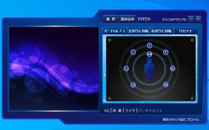 専用ソフトではバーチャル7.1chサラウンドの音場調整や、イコライザー、ステレオ音源の7.1chアップミックス、マイクゲイン調節などを設定できる。