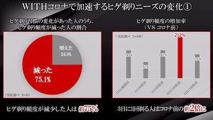 同氏は新製品について、「ニューノーマルの時代に最適な新製品」だと説明しており、これはコロナ禍でシェービング事情の変化を受けてのものという。同社の調査によると、75%のユーザーでヒゲ剃りの頻度が減少し、3日に1回程度剃るユーザーについては、コロナ禍前の約2倍に増加した。