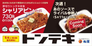 松屋、「厚切りトンテキ定食」が5/4から復活。“あのソース”も登場予定