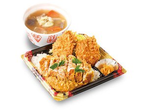 定番メニューの「ロースカツ定食」と「とん汁定食」のご飯(白米)がカツ丼になった特別メニュー。「サクサクやわらかボリューム満点のとんかつや、サクッと食べやすいヒレカツに、旨味がじゅわっと口いっぱいに広がるカツ丼の両方を一度に味わえる、かつやの “王道” 」だとアピールしている。