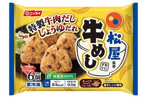 松屋は、日本水産(ニッスイ)と共同開発した冷凍食品「松屋監修 牛めしおにぎり」を、ECストア限定で5月23日に発売する。取り扱いは松屋のオンラインショップ、松屋およびニッスイが出店する楽天市場、PayPayモール、Amazonの店舗など。