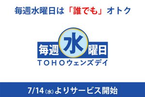 TOHOシネマズは、7月14日(水)から毎週水曜日、鑑賞料金を一律割引するサービス「TOHOウェンズデイ」を実施する。
