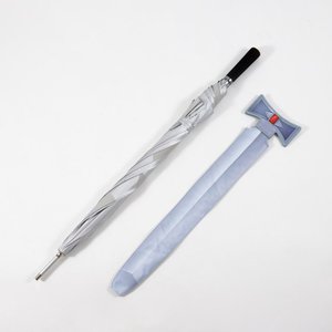 「アバンの傘」は主人公ダイの師匠にあたるアバンの使用する剣をモチーフとしたアイテム。販売価格は7,700円(税込)。広げ幅約120cmの大型傘でありながら、アルミシャフトを用いることで約360gという軽量化を実現するほか、UV+シルバーコーティングされている生地を使用することで晴雨兼用として使用できるなど、ファンアイテムに留まらない利便性をアピールしている。