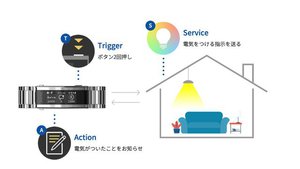 「Riiiver」はシチズンが展開する“様々なデバイスを基点にヒト・モノ・コトを有機的に結びつける”IoTプラットフォーム。きっかけとなる「トリガー」、連動させたい「サービス」、動作を起こす「アクション」の3つの要素を組み合わせ、ユーザーが欲しい機能を作り出せるとしている。
