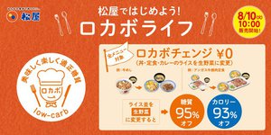 松屋、ライスを生野菜に無料変更できる「ロカボチェンジ」。8月10日から