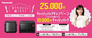 パナソニックは、対象の炊飯器とオープンレンジを同時購入で25,000円、どちらかを単品購入で10,000円キャッシュバックするキャンペーンを、本日8月18日から実施する。応募締切は11月15日23:59まで。