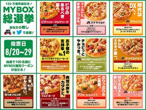 ピザハットは、おひとりさま専用ピザセット「MY BOX(マイボックス)」の無料クーポンが当たるTwitterキャンペーン「MY BOX総選挙」を開始した。キャンペーン期間は8月29日(日)23:59まで。