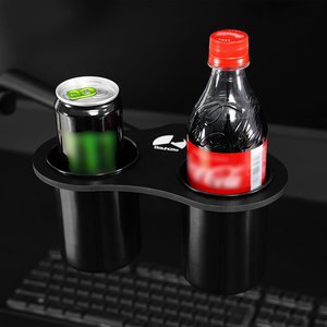 また、搭載されるカップホルダーは2つのドリンクをセットできる構造となっており、缶のほか、500mlペットボトルにも対応する(内径75mm)。使用例として「HP回復用のエナジードリンクと水分補給用の水を同時にセット」「飲み物とスティック形状のお菓子」並べて入れるなどの使い方を同社は提案している。なお、食品を入れる際には別途容器を用意することが推奨される。