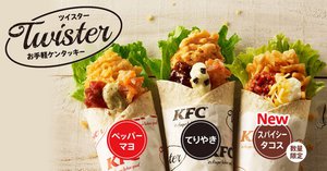 ケンタッキーの定番メニュー「ツイスター」の通常ラインナップ「ペッパーマヨ」「てりやき」に加え、数量限定メニューとして「スパイシータコス」が登場する。