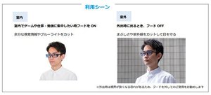 また、外出時や運転時など広い視野を確保するべき場面では、フードを外して通常のメガネとして使用できる。