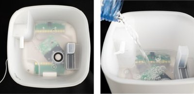 口が大きい広口タンクを採用し、トップカバーを付けたまま簡単に給水や手入れが可能。給水用のスポンジを排除した構造になっており、スポンジ交換の手間も省いたとする。