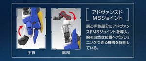 また、RGシリーズに共通して用いられる組み立て済みの内部フレームパーツ「アドヴァンスドMSジョイント」は、肩と手首部分に導入。腕を自然な位置へポジショニングできる機構を取り入れており、大腿部のスイングギミックと併せることで後期OPアニメーションで特徴的な「腕組み」ポーズを自然な形で再現できると同社はアピールしている。