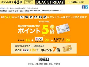 楽天市場では「ブラックフライデー」セールを11月23日1:59までの期間で開催している。お買い得商品が多数並び、最大43倍のポイント還元など見逃せない要素が目白押しだ。そんな楽天のブラックフライデーを “さらにお得に” 楽しむ方法を紹介したい。