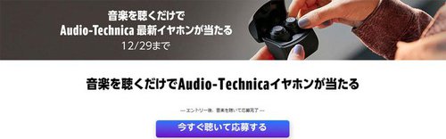 Amazon Music関連でいうと、 “聴くだけ”でオーディオテクニカの完全ワイヤレスイヤホン「ATH-CKS50TW」が当たるキャンペーンも現在実施中だ。