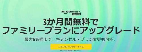 また、既にAmazon Music Unlimitedに登録されているというユーザーには、ファミリープランへの3ヶ月無料アップデートキャンペーンといった施策も用意されている。