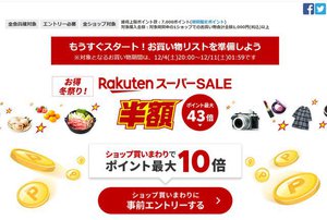 楽天市場の開催する大型セールイベント「楽天スーパーSALE」がいよいよ本日12月4日20時から12月11日(土)1時59分(10日深夜25時59分)までの期間で開催される。
