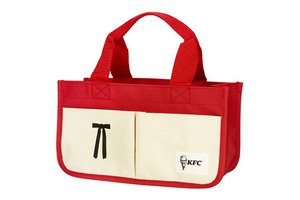 KFCオリジナルポケットミニトートは、普段使いのしやすさに配慮。ちょっとした外出にぴったりのサイズとしており、小分けができる2つのポケットを備えている。カラーはレッドとホワイトのバイカラーで、自立する設計を採用する。