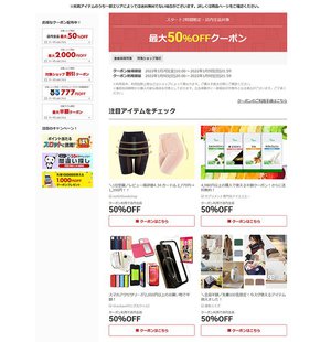 また、20時のスタート直後、2時間限定で使える最大50%OFFクーポンも配布中。クーポン対象ショップは特設ページで確認できる。