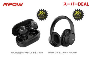 スーパーDEALでは、完全ワイヤレスイヤホン「M30」をポイント20%還元に。ワイヤレスヘッドホン「H7」も20%還元にする。