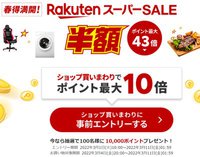 楽天スーパーSALEの期間は3月11日(金)1時59分まで。各種アイテムがセール価格になっているほか、複数のショップで買い物するなど各種条件を満たすことでポイントを最大43倍獲得できる。